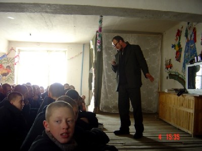На фотографии мой муж Фёдор проповедует на малолетке, куда мы ездили от Союза писателей по губернаторской программе.